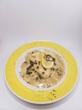 Served in sherry wine cream sauce with sauteed shallots, mushrooms, & sun-dried tomatoes, with a side of spaghetti.